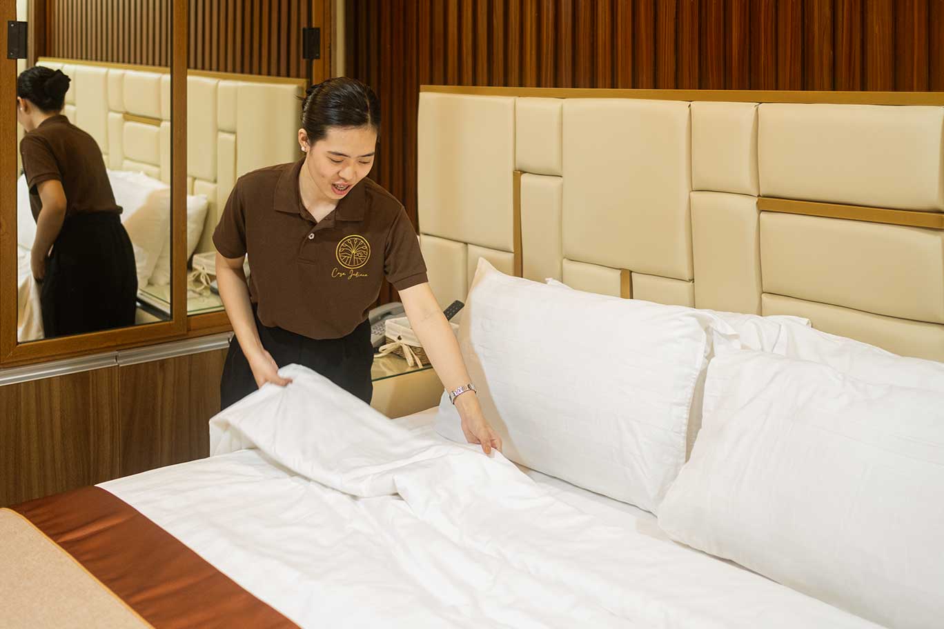 Immerse yourself in cozy comfort with our thoughtfully designed standard rooms. Perfect for solo travelers or couples, these rooms offer a blend of simplicity and modern amenities to make your stay enjoyable. With its comfortable beds and beautiful space at 28 sq.m., the Standard Room is the perfect expression of elegance and modernity.